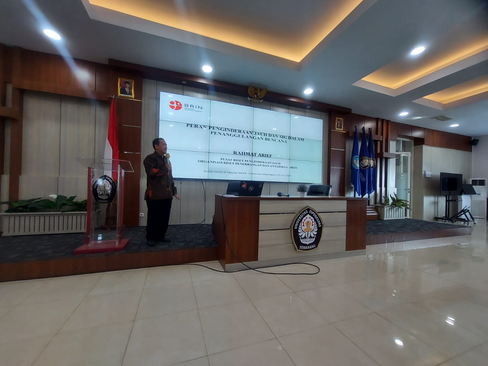 Tuesday (13/6/2023), the Department of Geodesy Engineering, Faculty of Engineering Undip held a Guest Lecture with the National Research and Innovation Agency (BRIN) Remote Sensing Research Center (PRPJ) in R. Theatre, Dean Building Lt. 4, Undip Faculty of Engineering by presenting Dr. Rahmat Arief, Dipl-Ing, as the Head of the BRIN Remote Sensing Technology and Data Center as a speaker at the event. The theme was ” State of the Art of Remote Sensing Technology in Monitoring Land Cover Changes and Climate Change.”