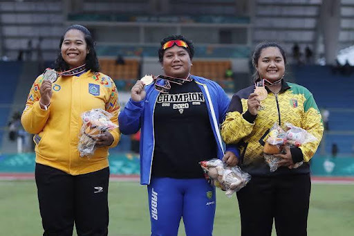 ADINDA KARINA (paling kanan) saat meraih perunggu cabang atletik nomor tolak peluru puteri pada PON XX Papua 2021